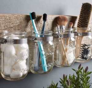 Organizzazione. I barattoli in vetro, lasciati così come sono oppure decorati, sono dei preziosi alleati per organizzare gli oggetti in cucina, in bagno, sulla scrivania, in dispensa, in garage e perché no nell’armadio. Lasciano vedere facilmente quello che contengono, si chiudono, si possono raccogliere senza creare disordine. Come qui per esempio: